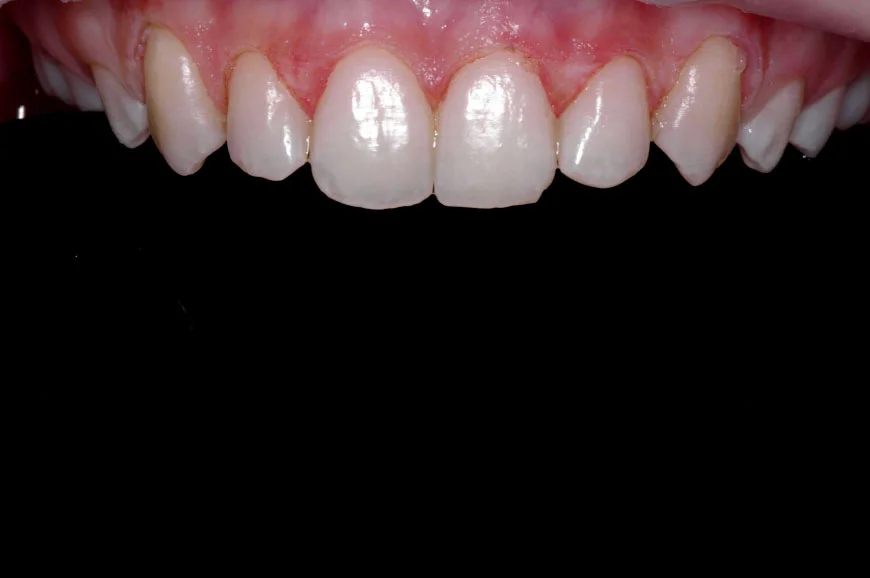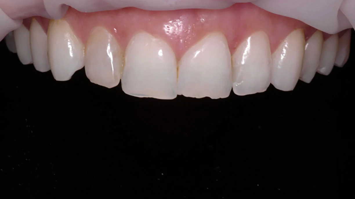 Oft er hægt að gera einfaldar aðgerðir til að láta bros líta betur út án þess að ganga alla leið þegar það er ekki hægt. Hér voru krónurnar misháar og eitthvað sem getur truflað en ákvörðun var tekin um að fyrsta skref yrði frekar að laga aðlægar tennur því efrihluti miðframtanna sést ekki í brosinu.