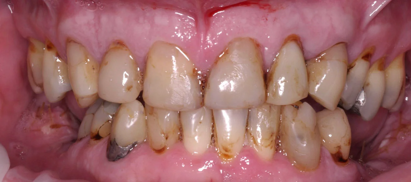 Lágt sýrustig í munninum í langan tíma veldur glerungseyðingu. Eyðingin getur m.a verið vegna sýrra drykkja,gosdrykkja eða bakflæðis eins og hér. Tennurnar höfðu leyst upp og bithæð minnkað.