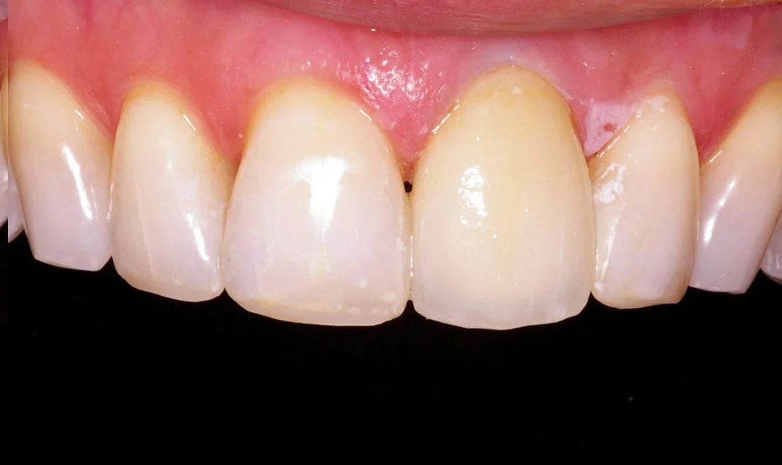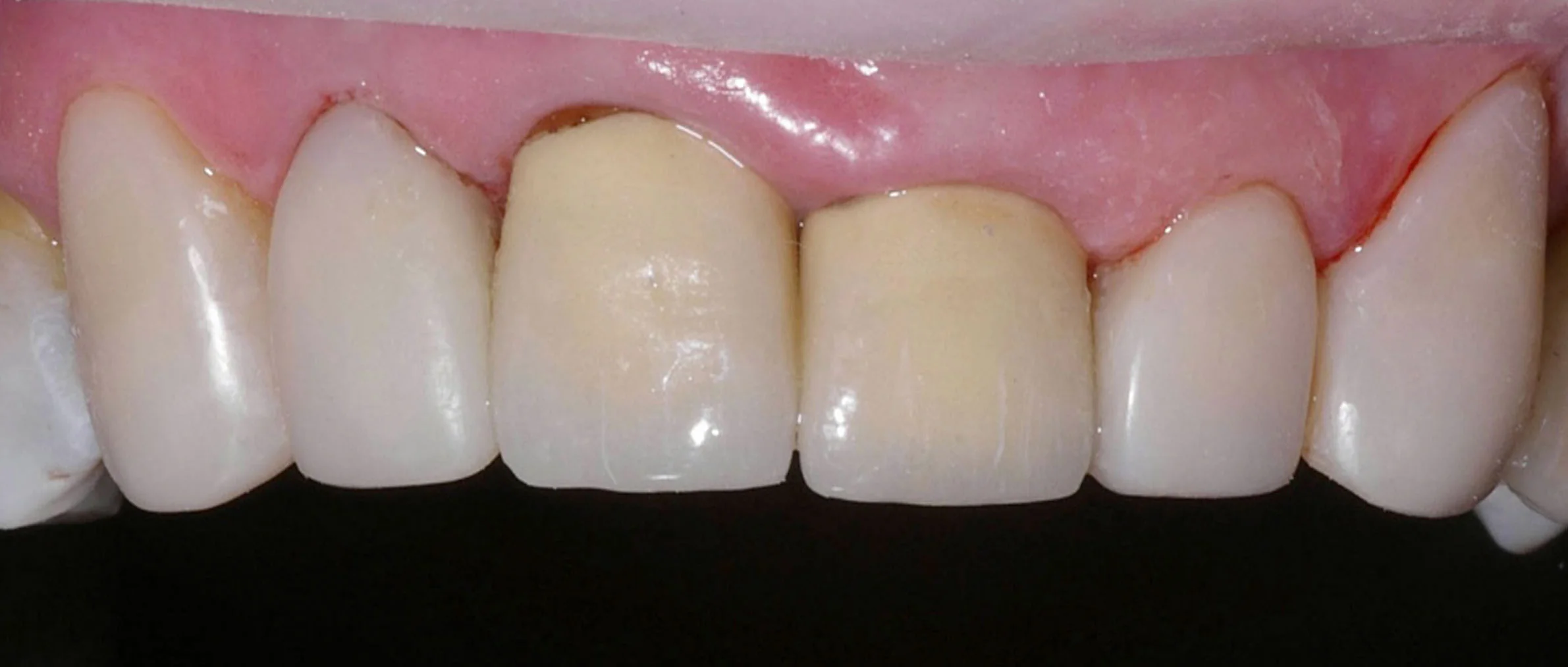 Meðferð var kláruð í einni heimsókn. Seinna er svo hægt að skipta út krónunum í miðjunni, gera þær líkari hvor annari og raunverulegri.