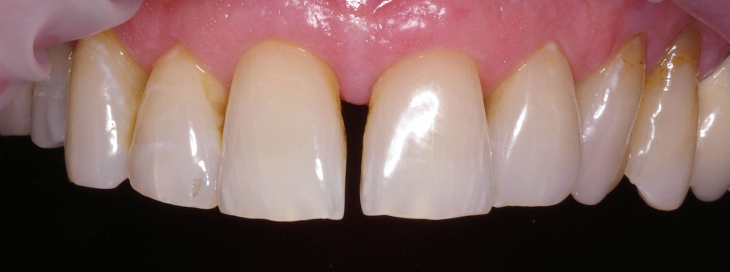 Í þessu tilviki voru miðframtennur færðar saman og hliðartennur stækkaðar með viðbótum úr tannlituðu fyllingarefni. Til þess að halda í raunveruleikann þá skiptir hlutfall framtannanna lykilmáli.